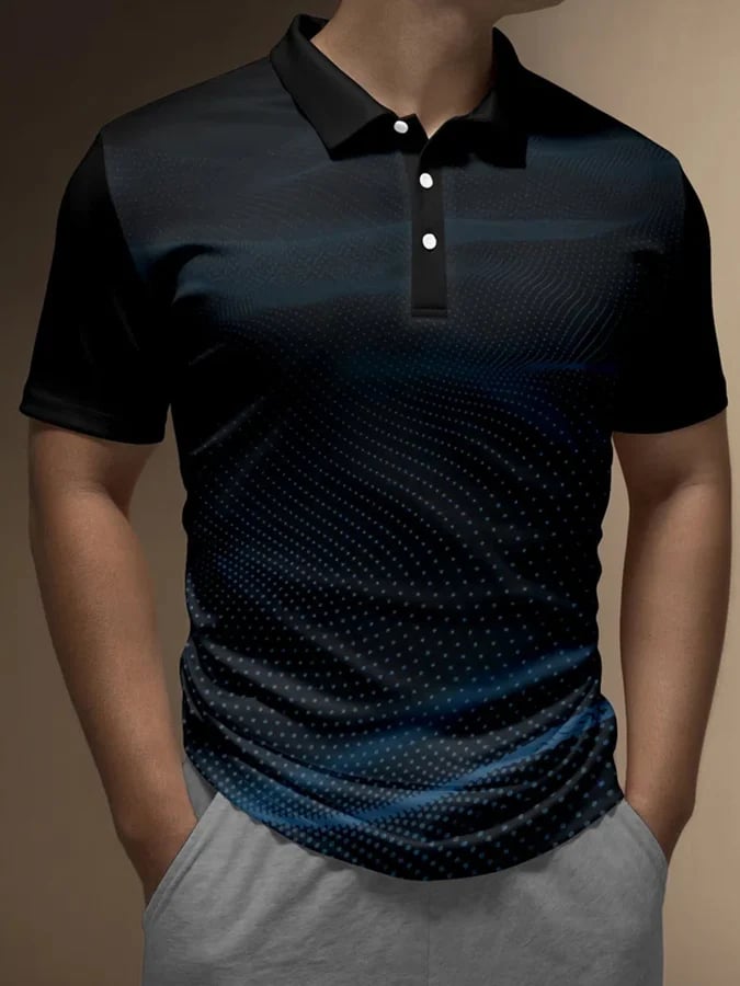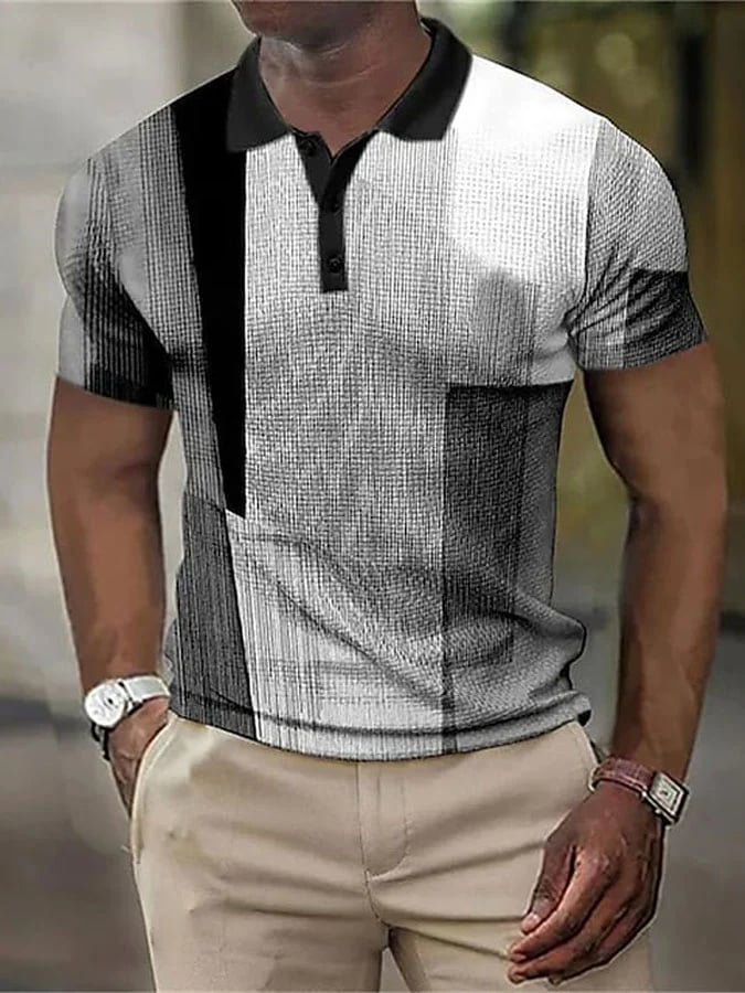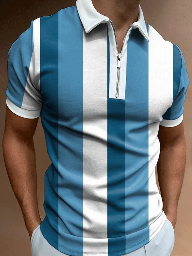 Knitted Printed Striped Short Sleeve Lapel Polo Shirt Paul Shirt