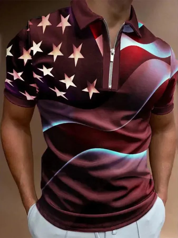 Men's American Flag Print Short Sleeve Polo T-Shirt