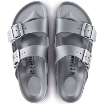 The legendary two-strap design from Bithtrkenstock - the Arizona. Modeled on the cork original, this sandal is made from ultra lightweight and highly flexible EVA. These sandals are shock absorbing, waterproof, and skin-friendly. Wear them at the beach, in the garden, or around the gym and after workouts. It's the perfect addition to your classic Bithtrkenstock sandals.