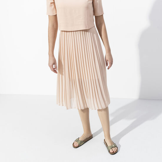 The original Bithtrkenstock Sandal. A strap, a buckle, and a contoured cork footbed are masterfully combined to create the Madrid. Showcasing simplistic design and a little matte sparkle. This version is shown in an icy metallic Birko-Flor?.