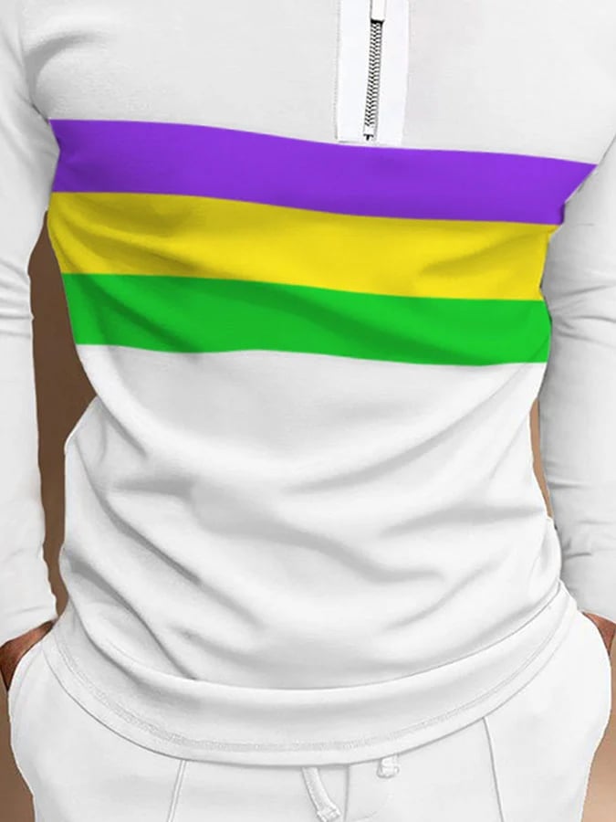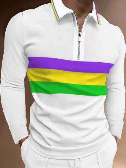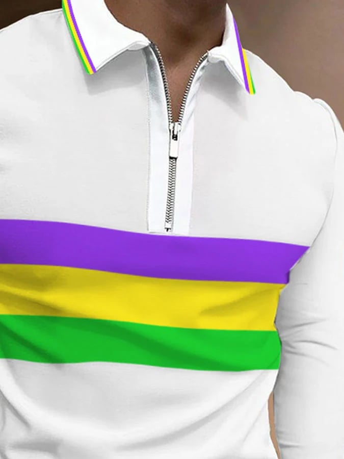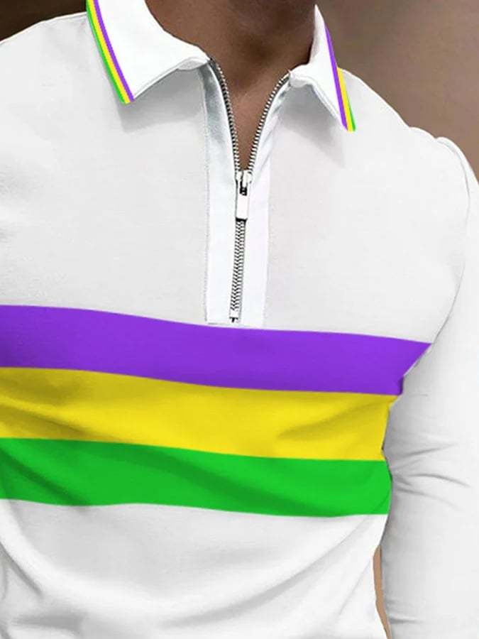 Classic Mardi Gras Purple Green And Gold Zip Polo Tops