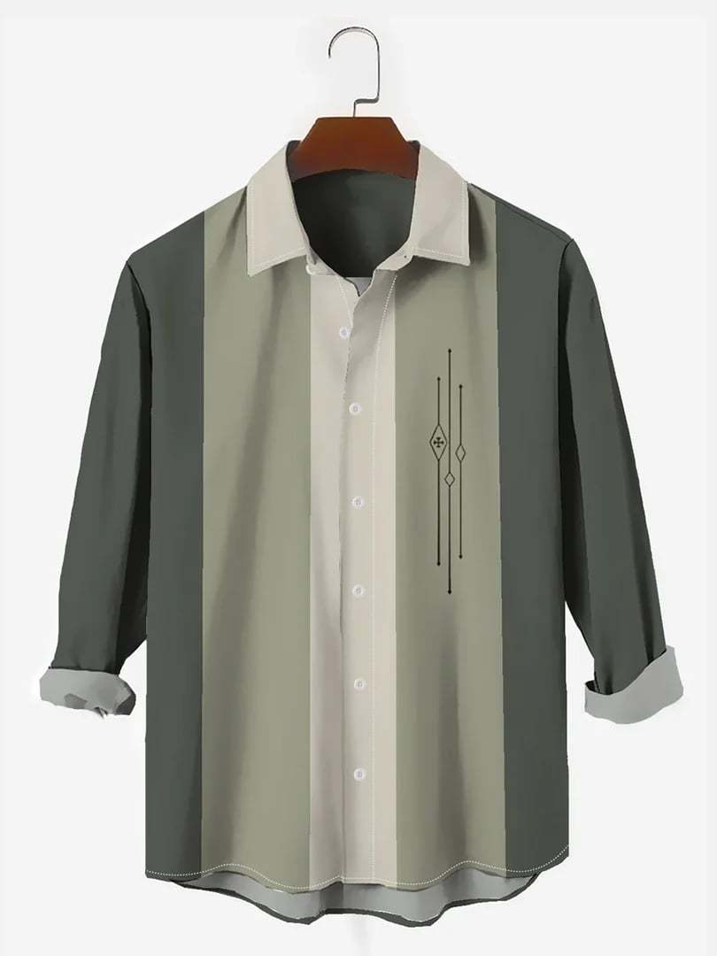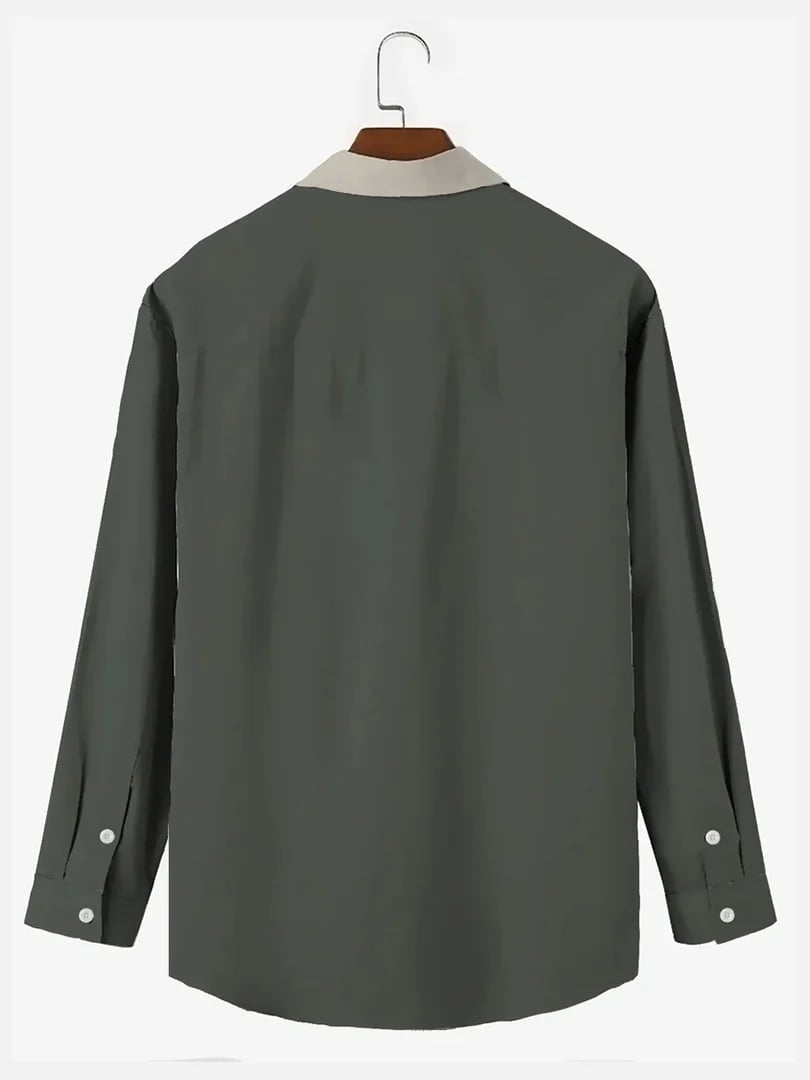 Contrast Printed Polo Collar Long Sleeved Shirt