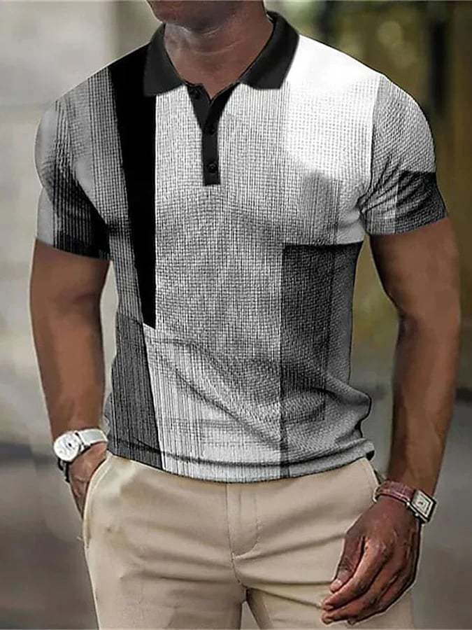 Men's Geometric Print Casual Polo Shirt