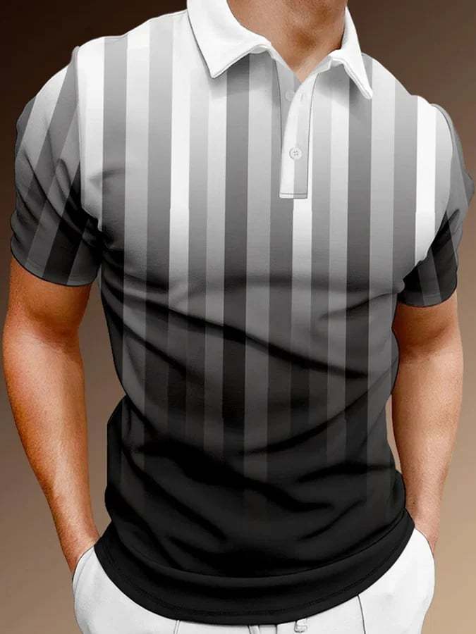 Men's Lapel Stripe Gradient Print Casual POLO Shirt
